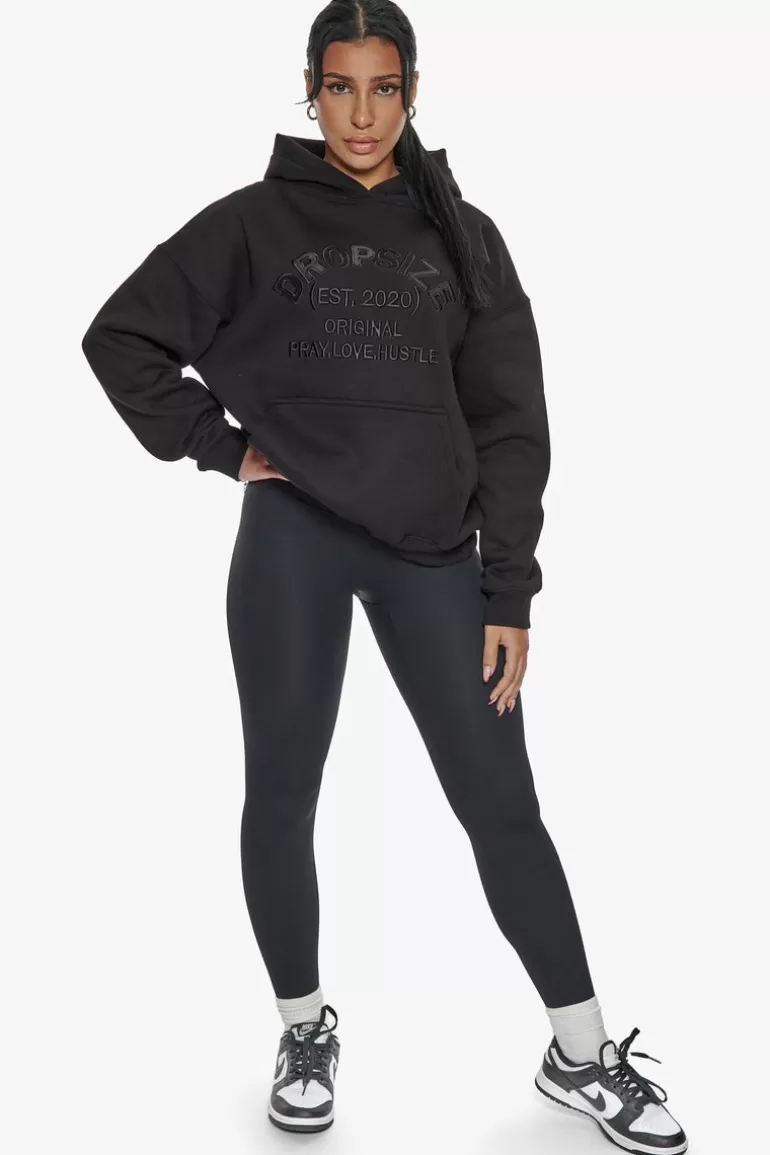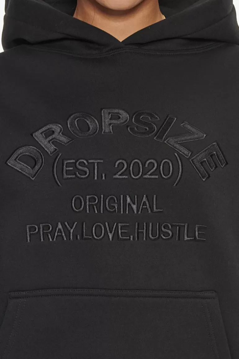 Best Dropsize Pray Love Hustle Embo Hoodie Black
