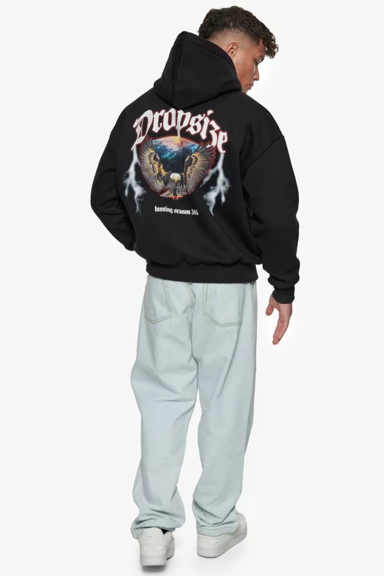 Best Sale Dropsize Heavy Oversize Hunting Season Eagle Hoodie Black