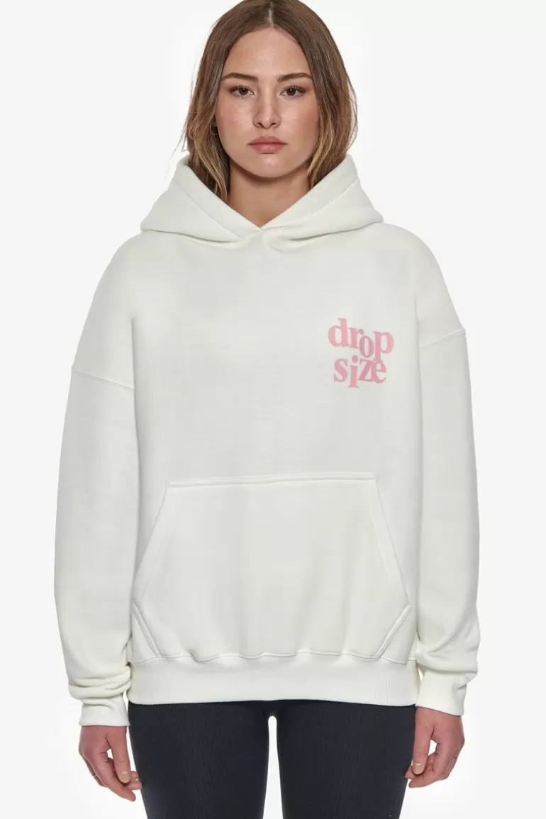 Best Sale Dropsize Heavy Oversize Ladies Letters Hoodie Cream / Pink