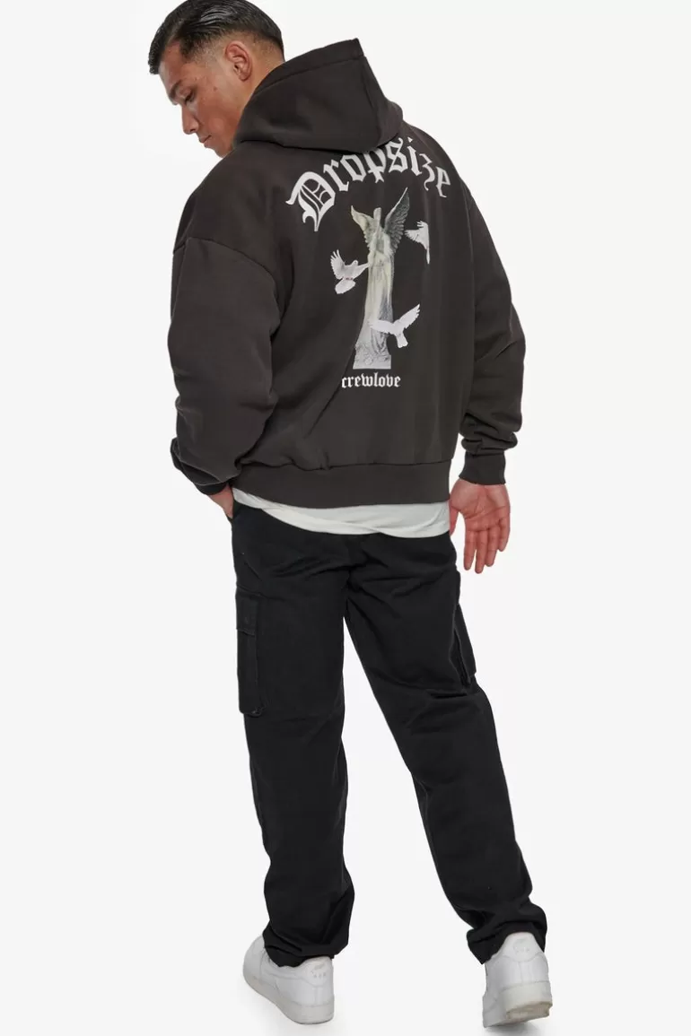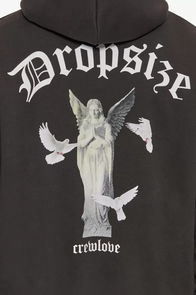 Cheap Dropsize Heavy Oversize Praying Angel Hoodie Washed Black