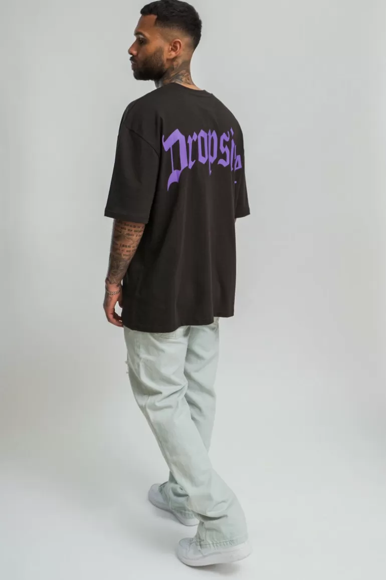 Hot Dropsize Heavy Backprint T-Shirt Washed Black/ Purple