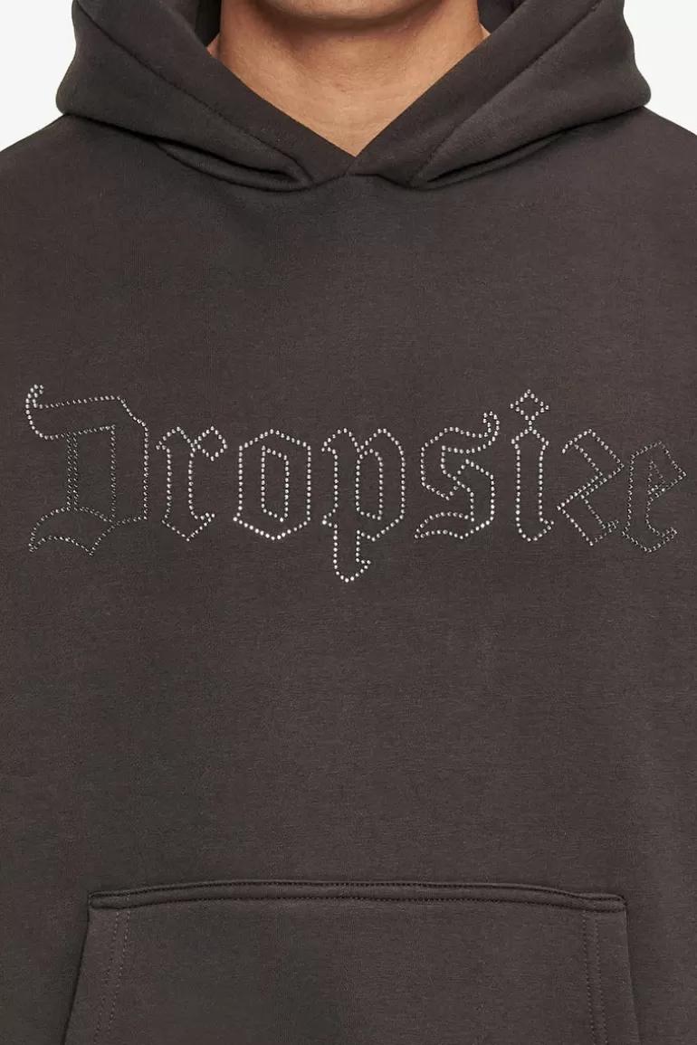 Hot Dropsize Heavy Oversize Rhinestone Hoodie Washed Black