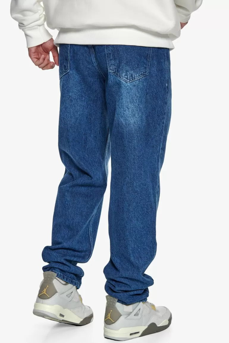 Hot Dropsize Loose Fit Monogram Jeans Dark Blue