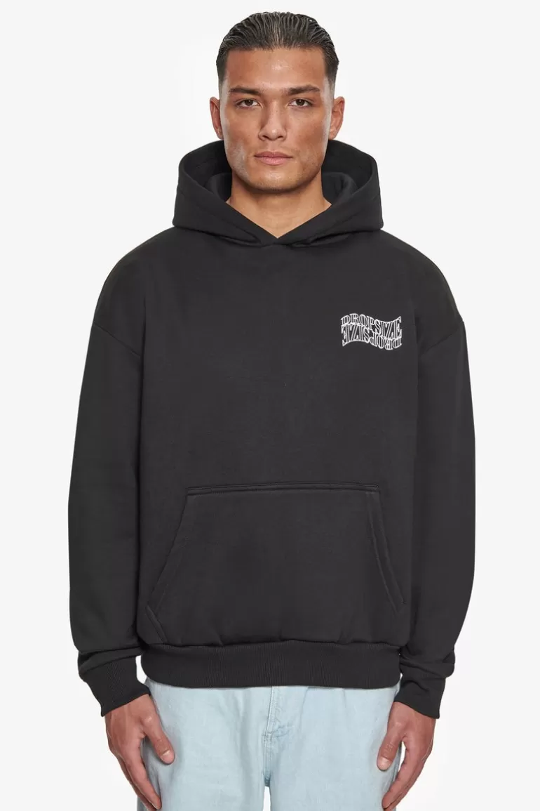 New Dropsize Heavy Oversize Mirrored Logo Hoodie Black/White