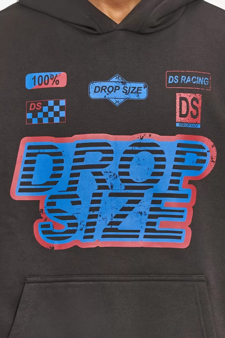 Online Dropsize Heavy Oversize Racing Hoodie Washed Black