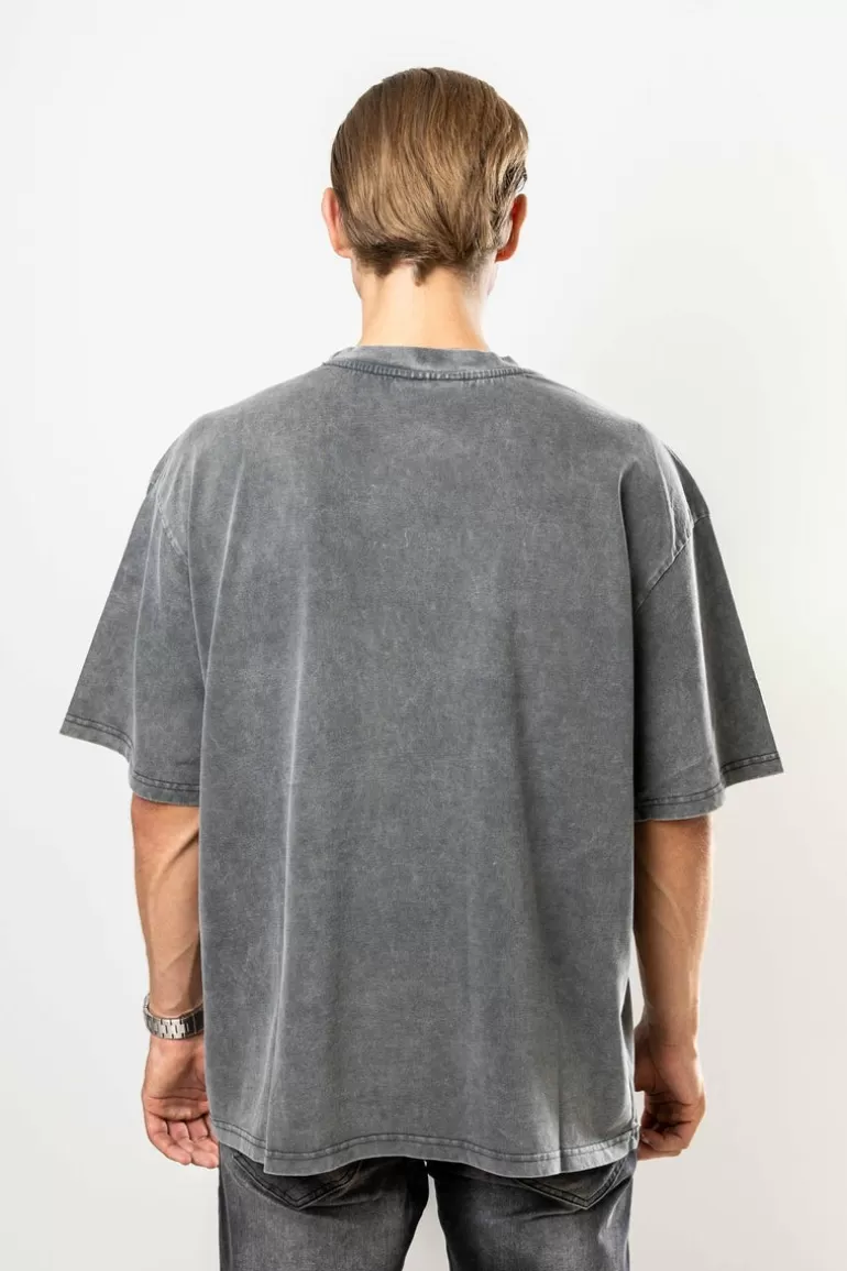 Shop Dropsize Burning Palm Design Heavy T-Shirt Acid Washed Black