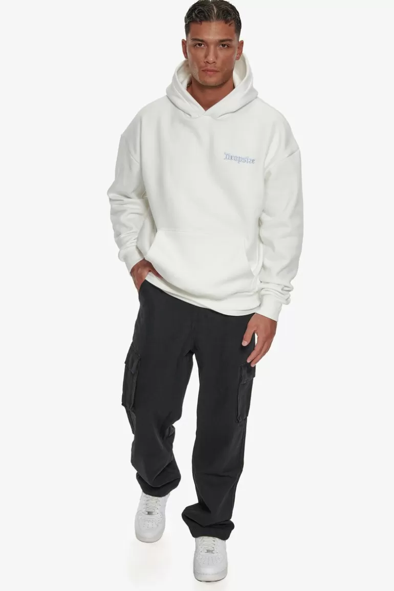Shop Dropsize Heavy Backlogo Hoodie Washed White / Baby Blue
