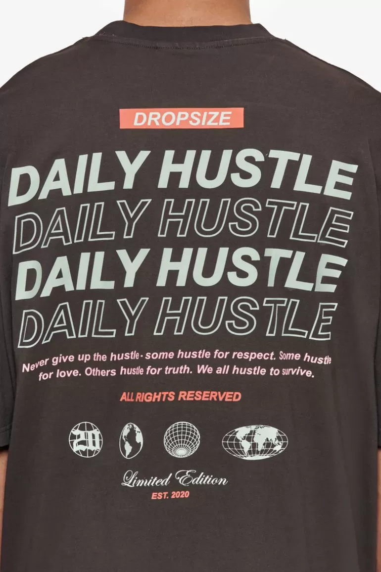 Shop Dropsize Heavy Oversize Quattro Hustle T-Shirt Washed Black