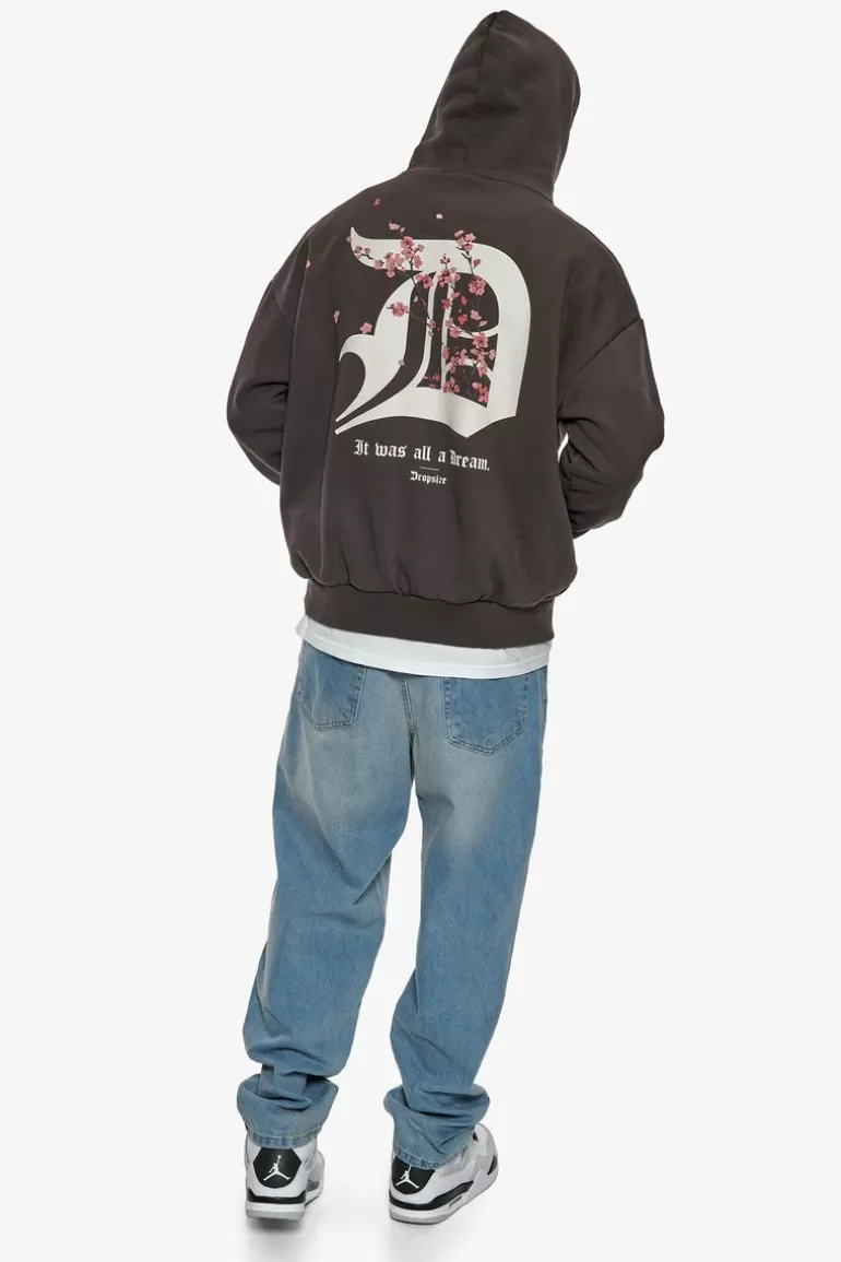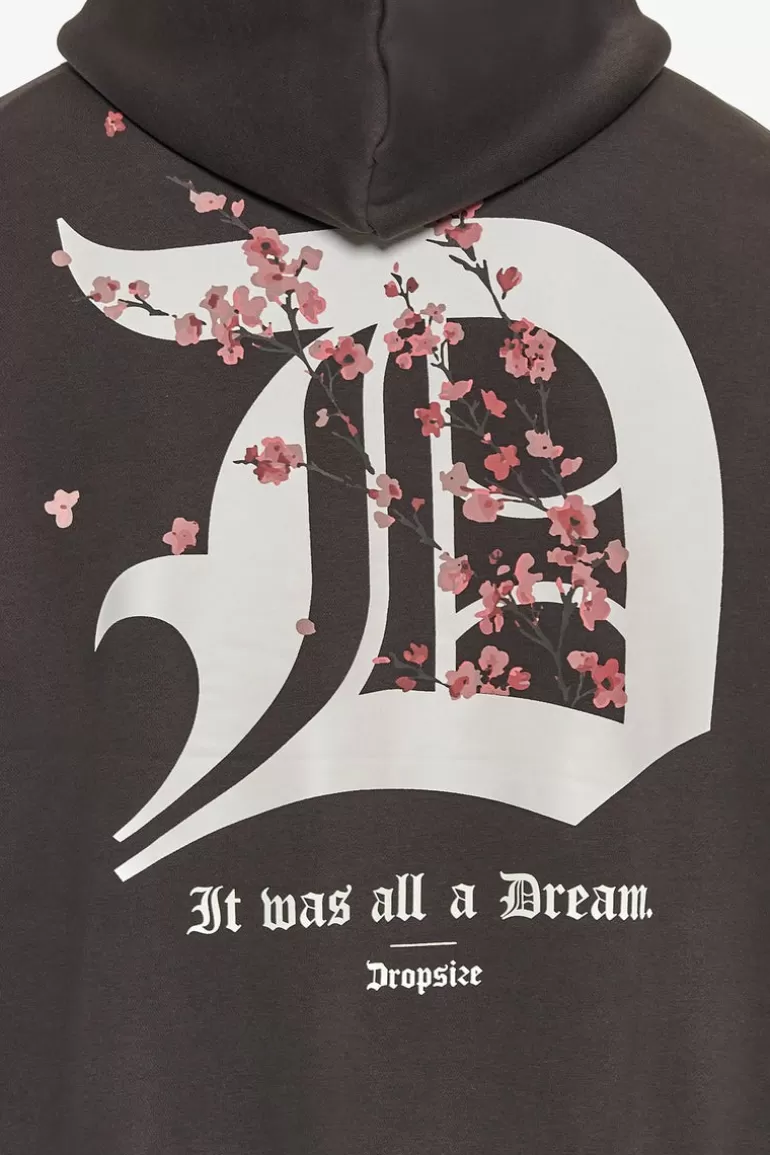 Store Dropsize Heavy Oversize Cherry Flowers Hoodie Washed Black