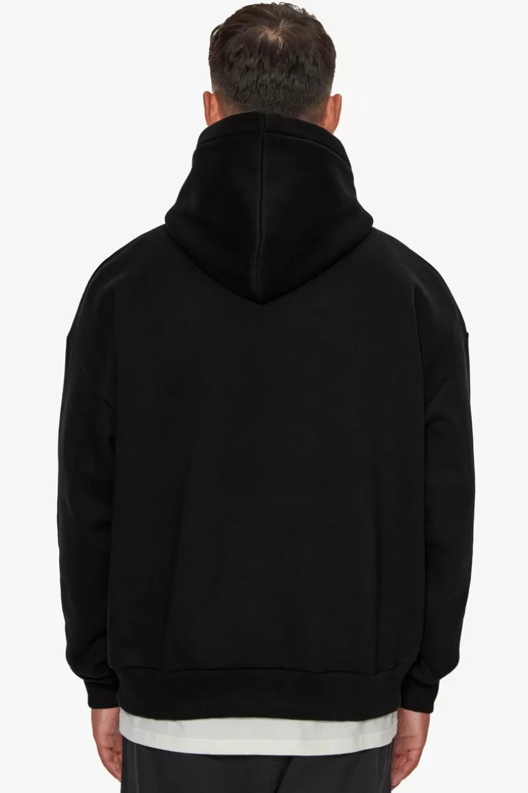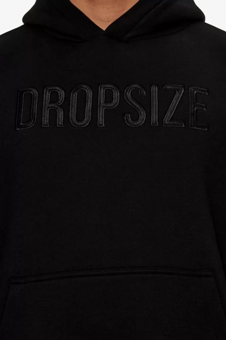 Best Sale Dropsize Heavy Oversize Flat Front Embo Hoodie Black