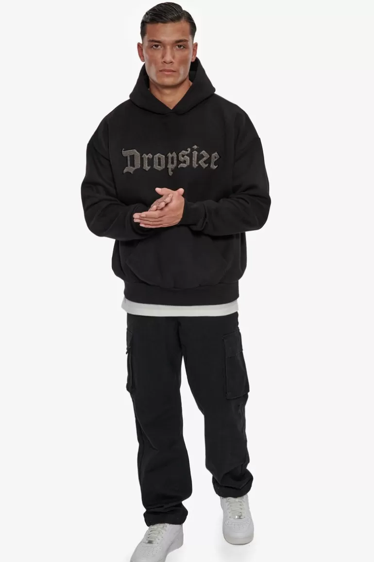 Best Sale Dropsize Heavy Oversize Frottee Embo Hoodie Black