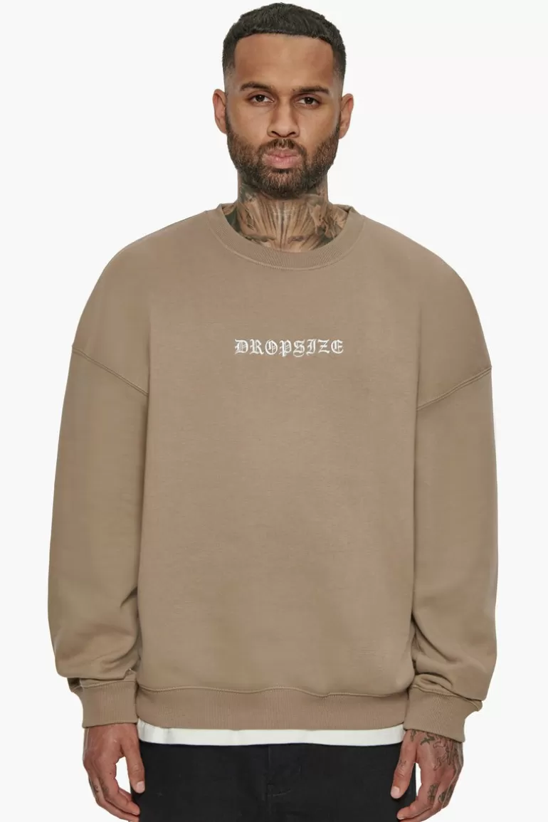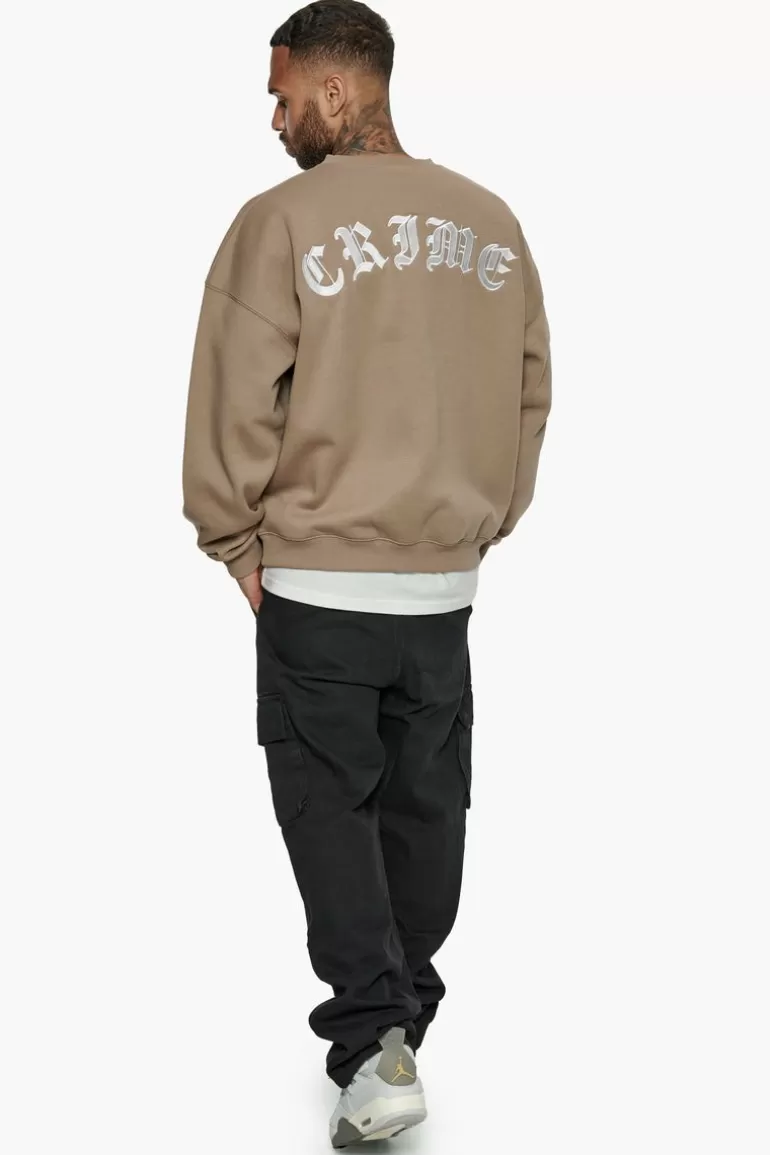 Clearance Dropsize Heavy Crime Crewneck Sweater Silver Mink