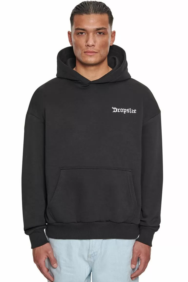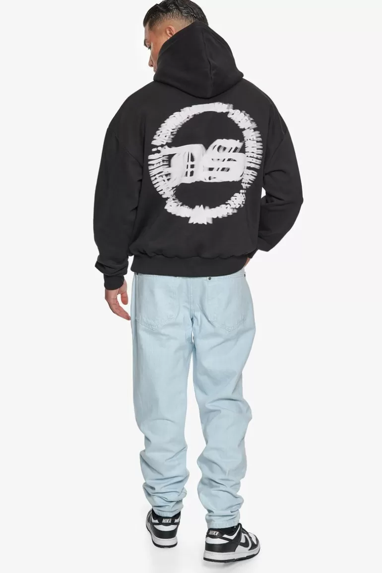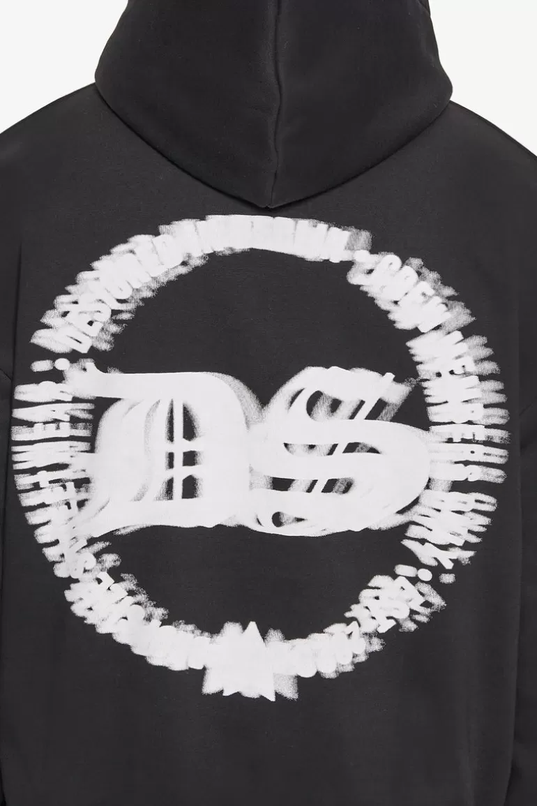 Clearance Dropsize Heavy Oversize Blurred Logo Hoodie Black
