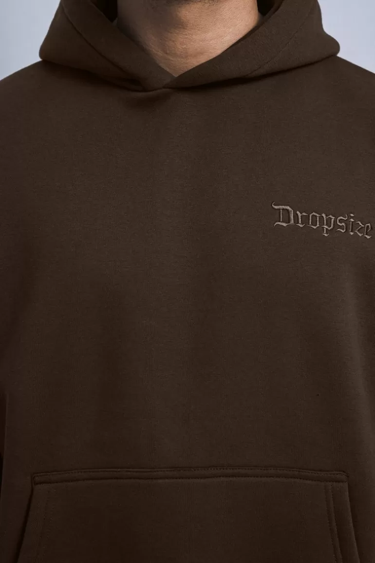 Discount Dropsize Heavy Oversize Embo Hoodie Chocolate Brown