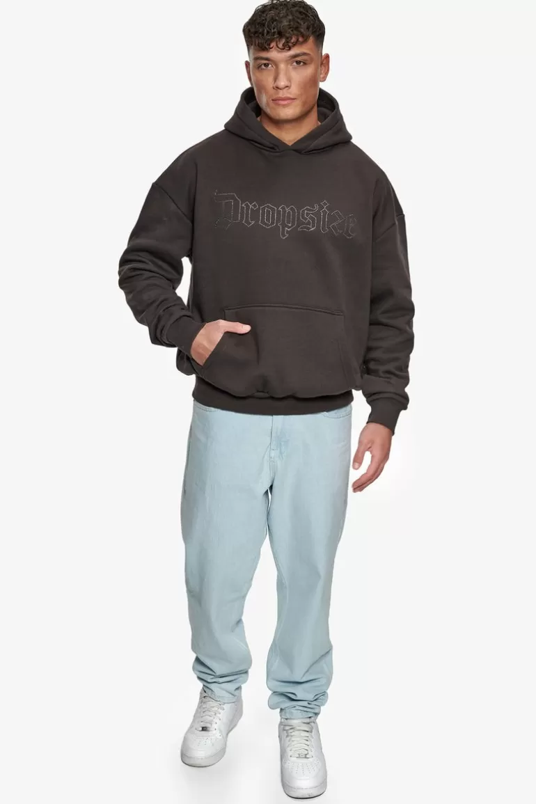 Hot Dropsize Heavy Oversize Rhinestone Hoodie Washed Black