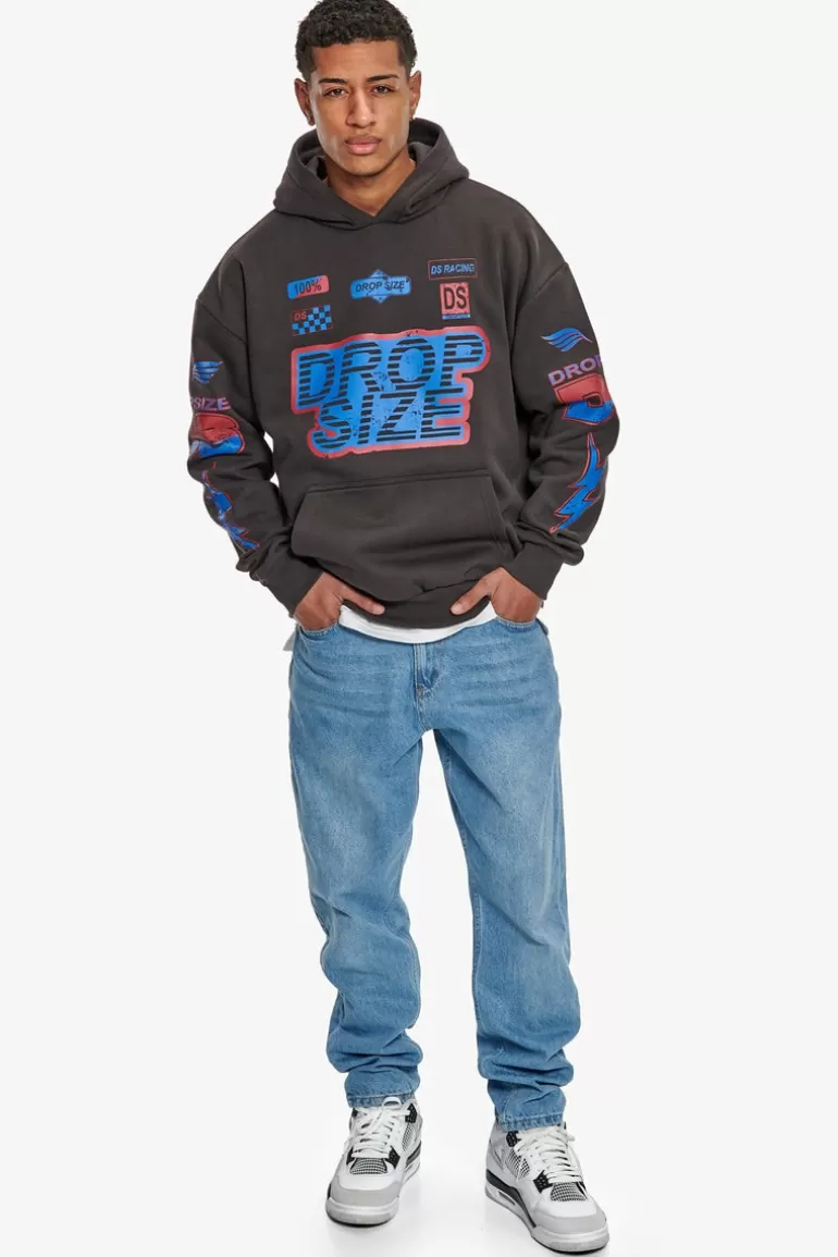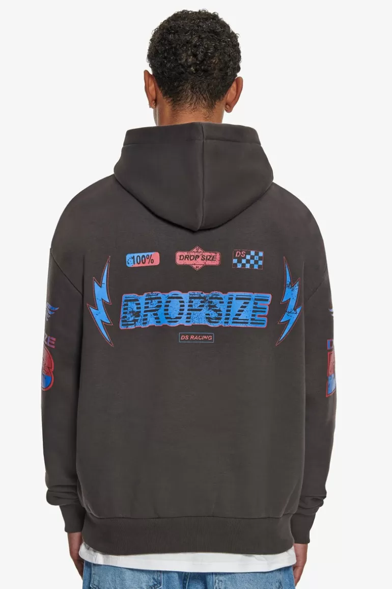 Online Dropsize Heavy Oversize Racing Hoodie Washed Black