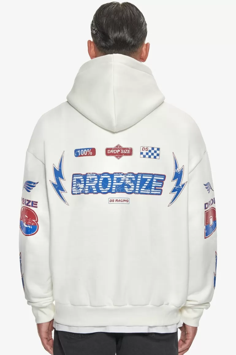 Outlet Dropsize Heavy Oversize Racing Hoodie Cream