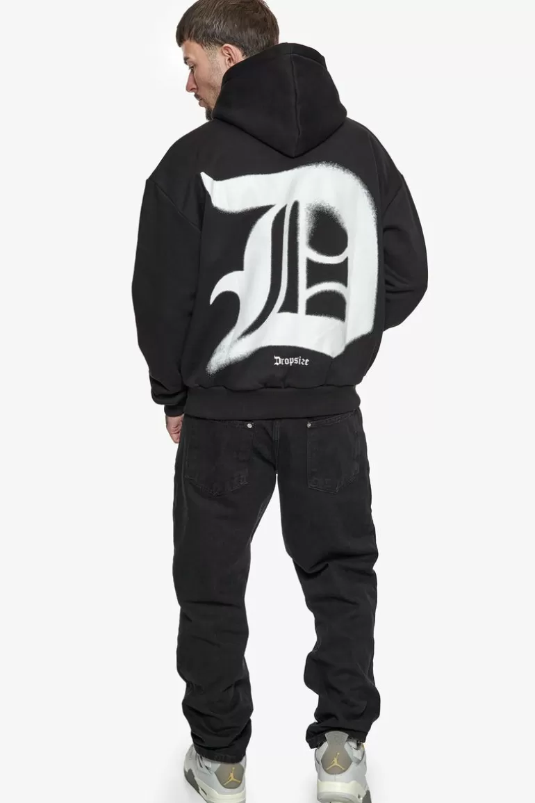 Shop Dropsize Super Heavy Oversize Blurred Logo Hoodie Black